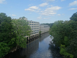 This picture shows the Willimantic River as observed from walking across the Thread City Crossing.