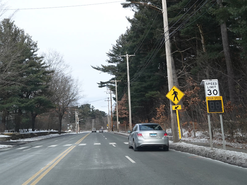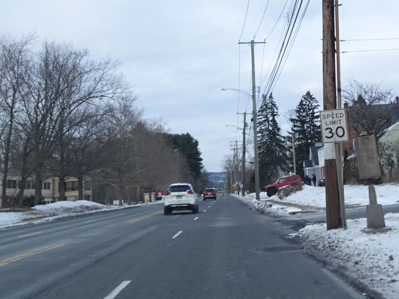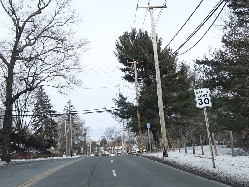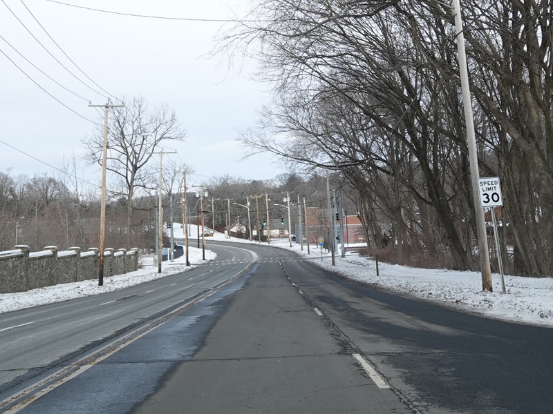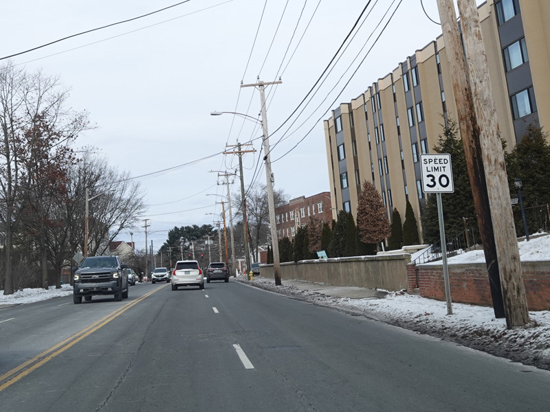 Welcome to Hamden! Whitney Avenue becomes a state road with the unsigned designation of SR 707 upon leaving the City of New Haven. It runs north as a four-lane undivided road.