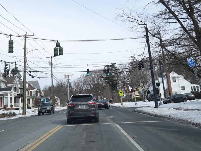SR 707 ends here at a traffic light at CT 10. Continue straight ahead on Whitney Avenue to go north or turn left onto Dixwell Avenue to go south. Turn right onto Dixwell Avenue for SR 717/Truck CT 22.