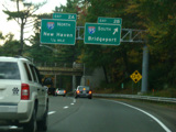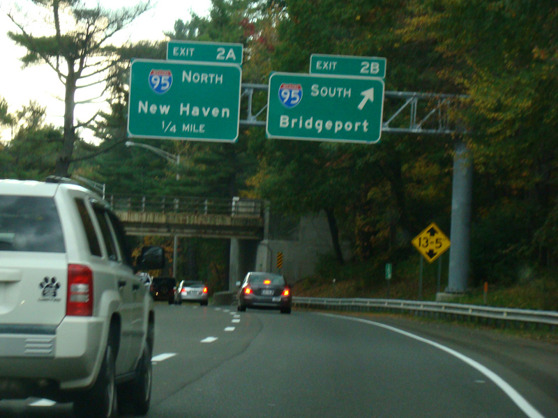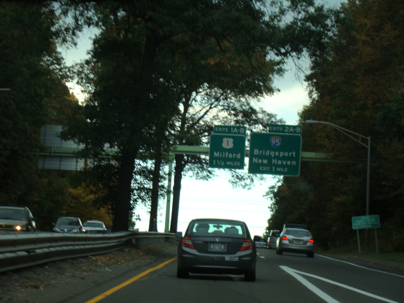 The Milford Parkway begins at exit 54 of CT 15 and runs south. Exits 2A-B are for the Connecticut Turnpike (I-95). Exits 1A-B are for Boston Post Road (US 1) in Milford. All motorists must use one of these four exits.