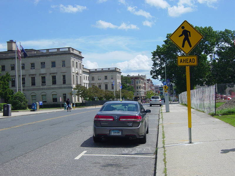 Meadow Street runs south through Waterbury as a four-lane undivided road.