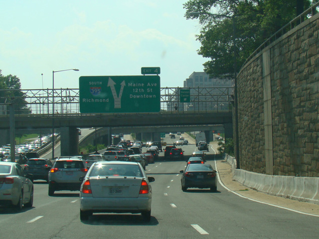 I-395 is a freeway connecting Washington to points south in Virginia. It enters the District of Columbia via a bridge over the Potomac River that touches down near the Jefferson Memorial. At first, it is known as the Southwest Freeway. It runs east for about a mile to an interchange with the Southeast Freeway (I-695). It then curves to the north to become the Center Leg Freeway, which passes through a tunnel under the National Mall. It emerges after a short distance to end at New York Avenue NW (US 50).