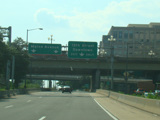 The ramp for exit 4 splits. Exit to the right for 12th Street. Continue straight ahead for Maine Avenue.