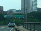 The ramp at the end of the bridge to Virginia splits. Bear left for