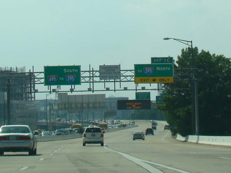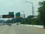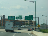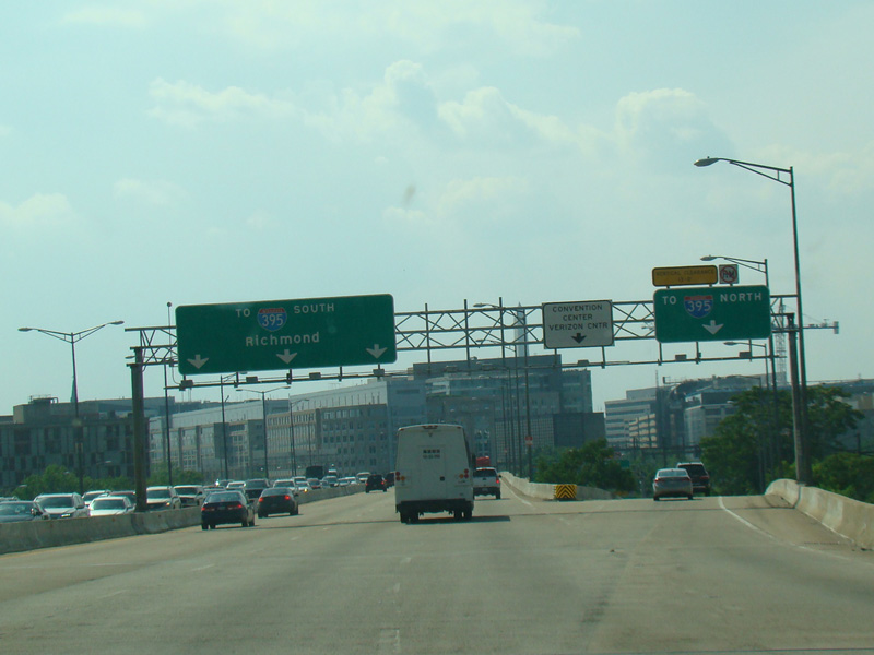 The Southeast Freeway ends here at I-395. Exit to the right to go north or continue straight ahead to go south.