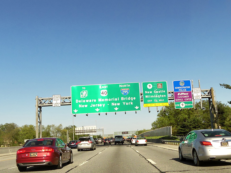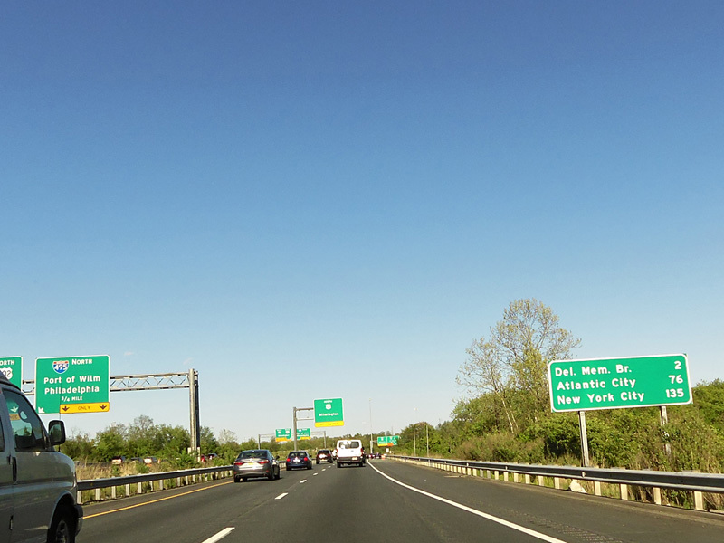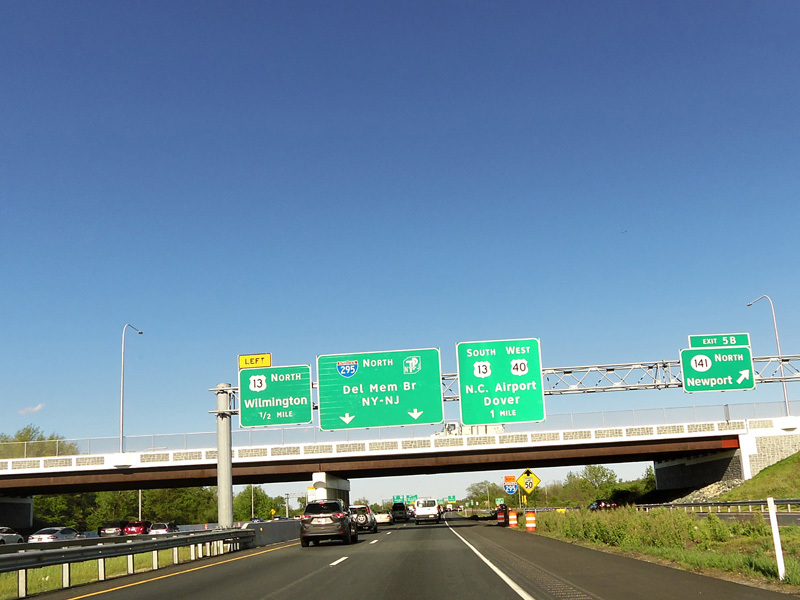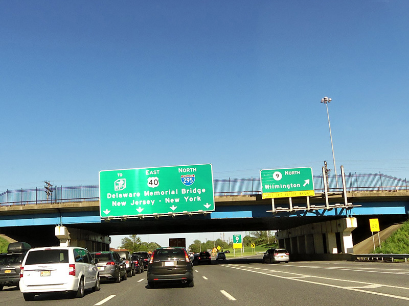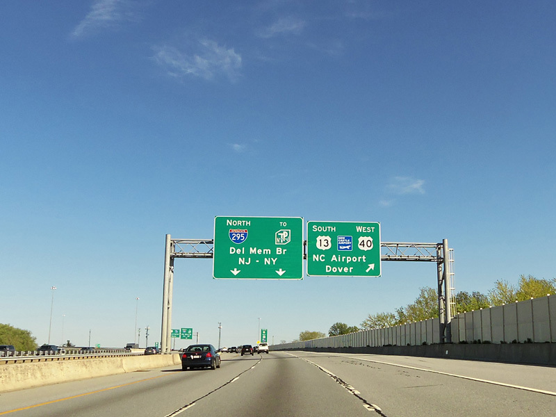 There is a pair of exits for Dupont Parkway (US 13/US 40). Eastbound US 40 is multiplexed with northbound I-295 from here across the Delaware Memorial Bridge and into New Jersey.