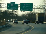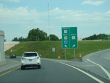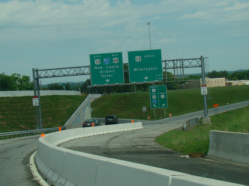 The ramp for the exit for Dupont Parkway (US 13) splits. Bear right to go north or left to go south, multiplexed with US 40 west.