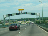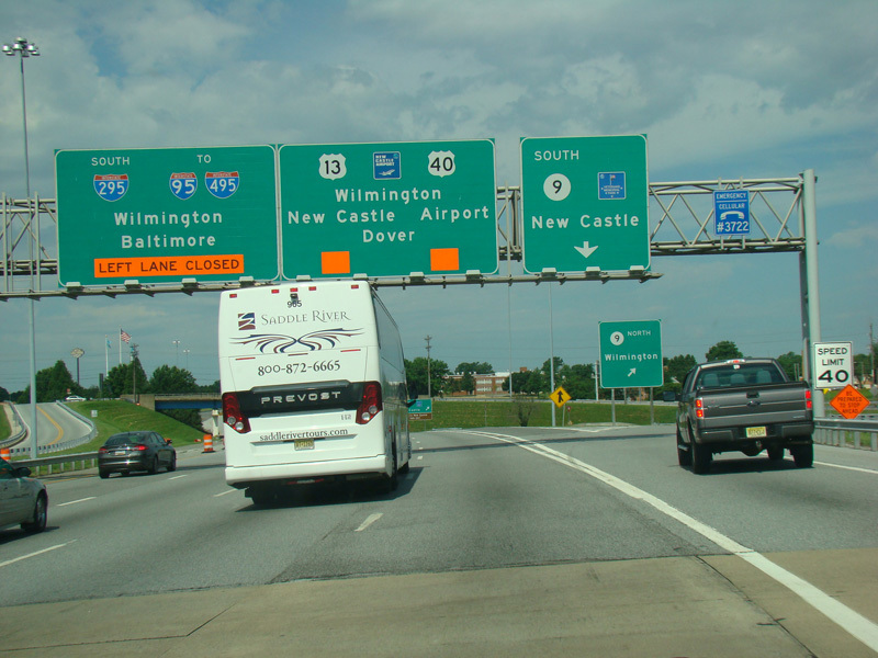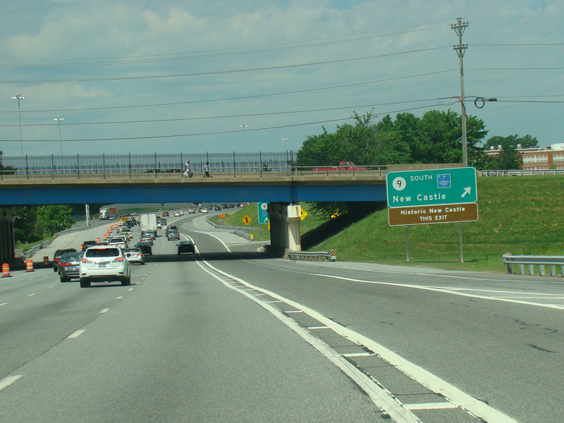 There is a pair of exits for Dupont Parkway (US 13). US 40, which is multiplexed with I-295 across the Delaware Memorial Bridge from New Jersey, splits off here and is multiplexed with US 13.