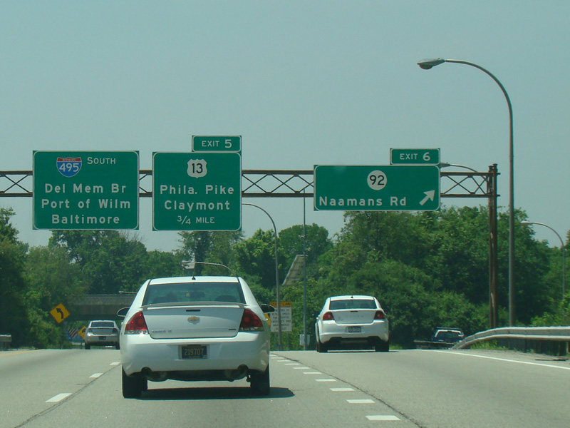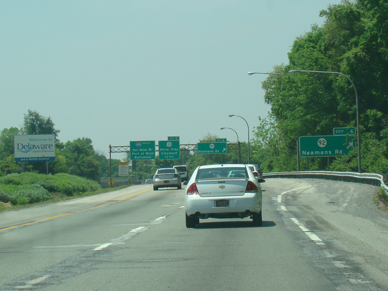 Exit 6 is for Naamans Road (DE 92).