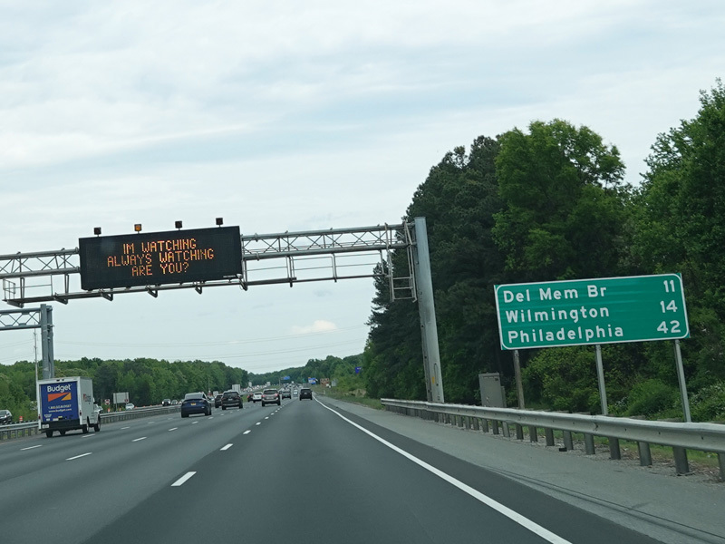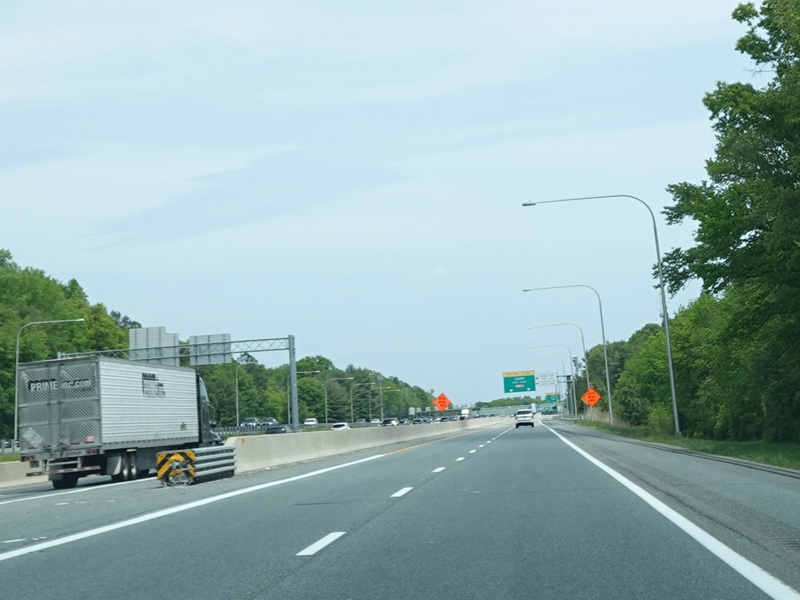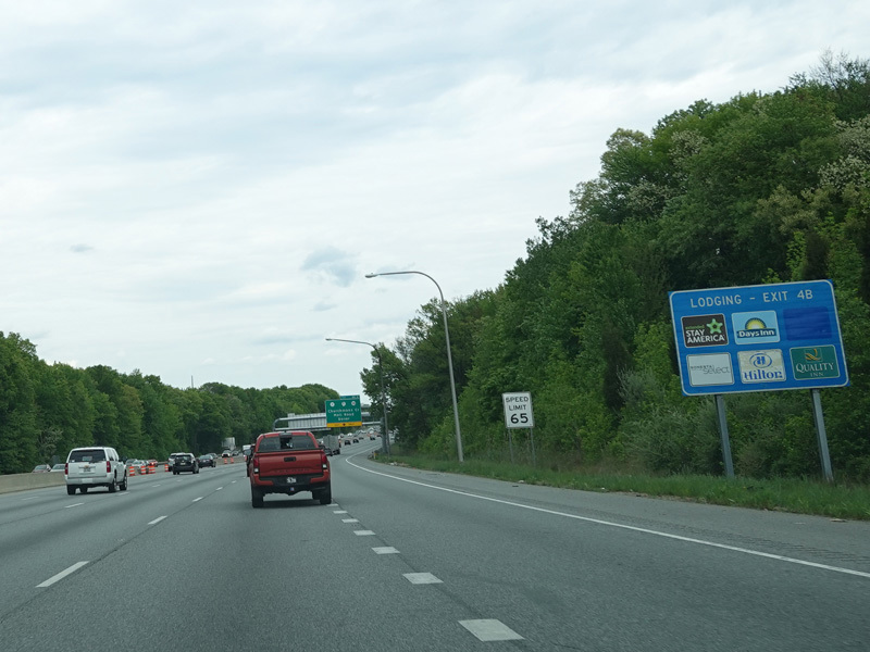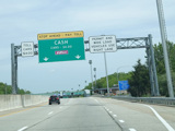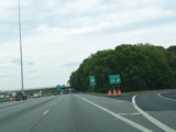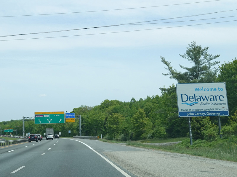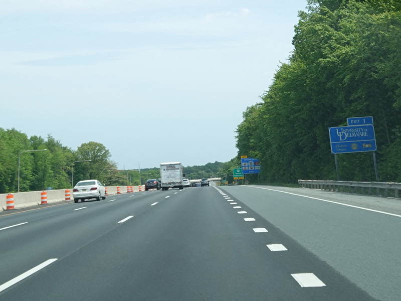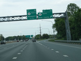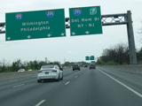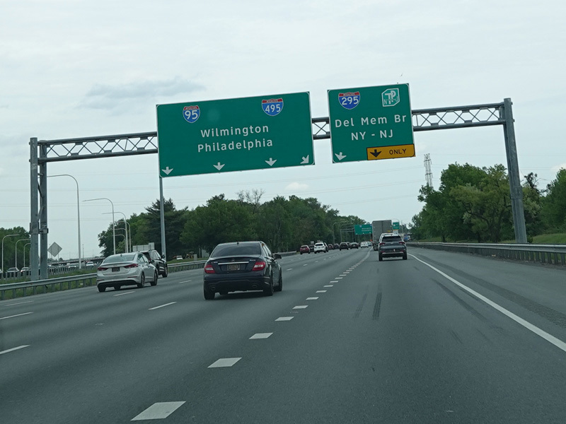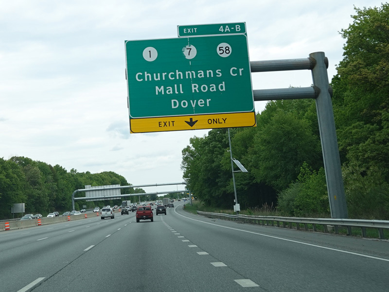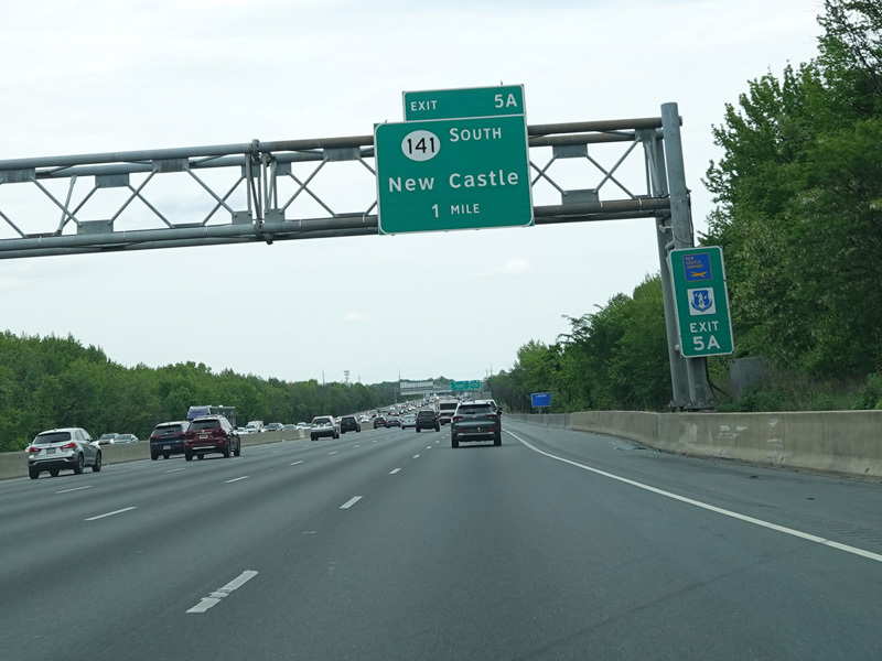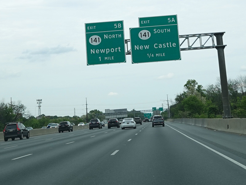 There is a major interchange here at the southern terminus of I-295. Bear left to stay on I-95. Bear right for the Delaware Memorial Bridge (I-295). Exits 5A-B are for Basin Road (DE 141). Exit 5B is accessed by taking I-295 to its first exit.
