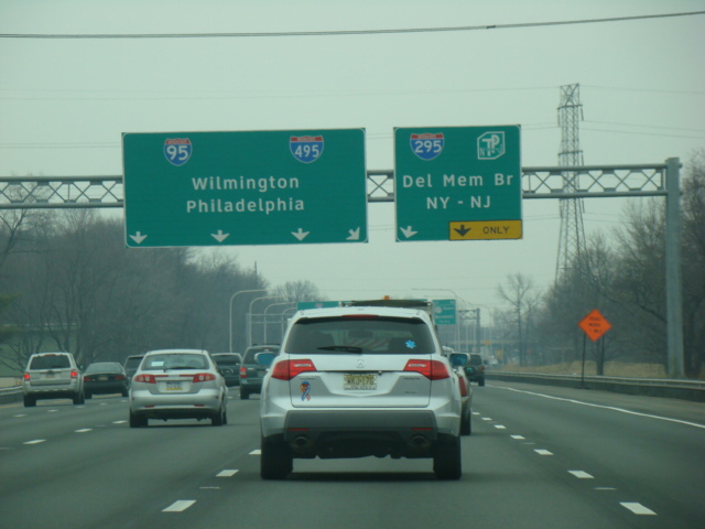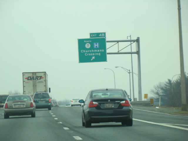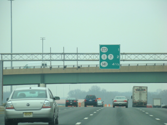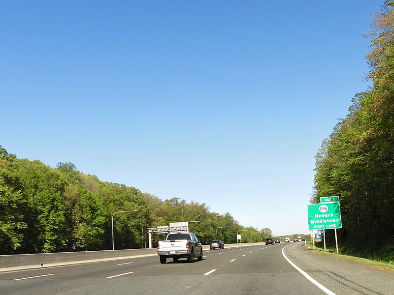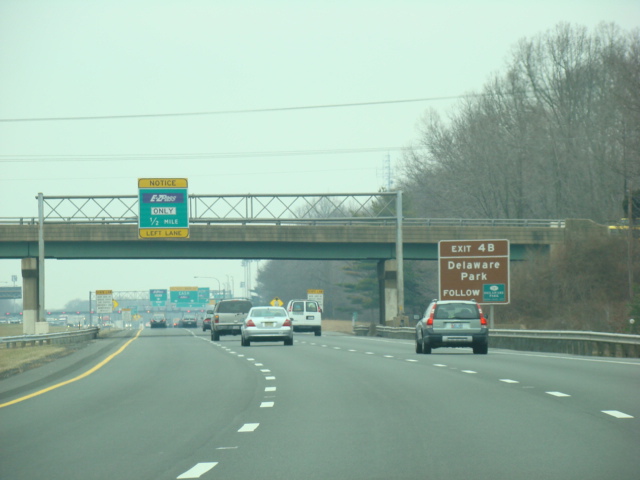 These pictures show the Delaware Turnpike northbound at exits 4A-B as it appeared before the interchange was rebuilt so that the two exits share a ramp.