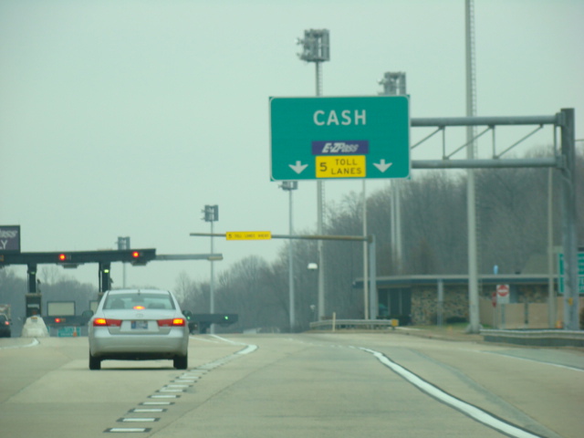 These pictures show the tollbooths on the Delaware Turnpike as they appeared prior to the addition of express E-ZPass lanes.
