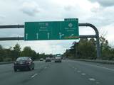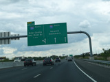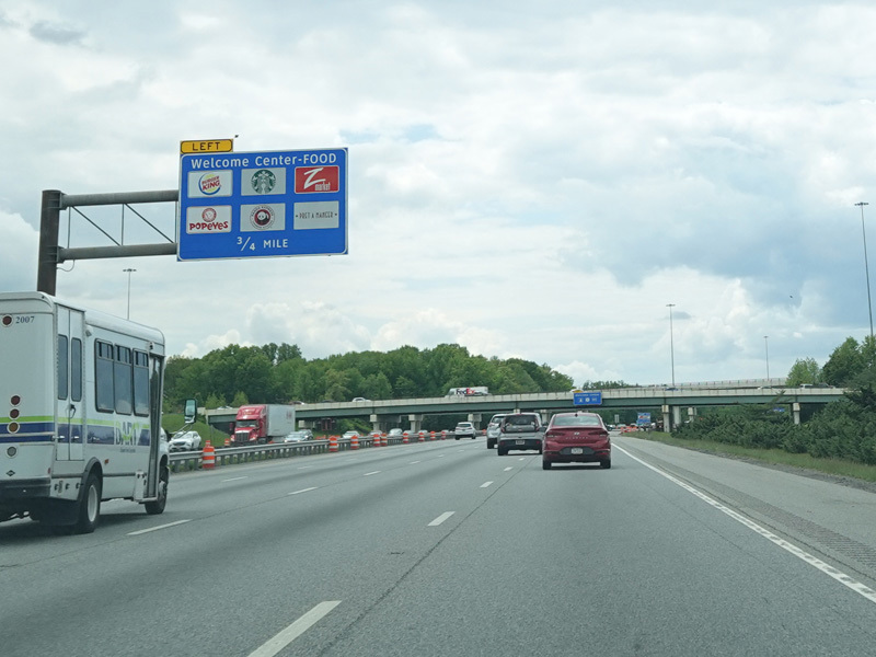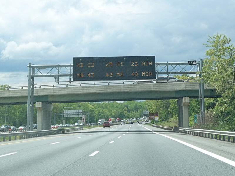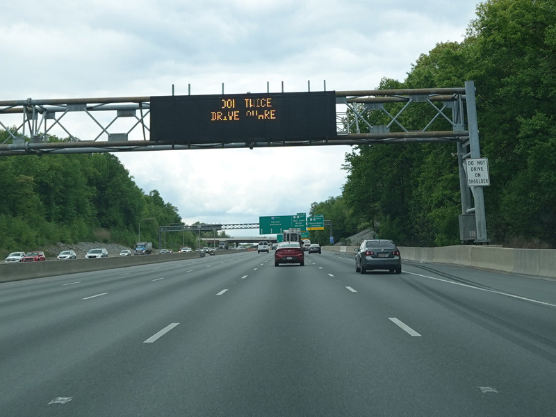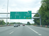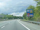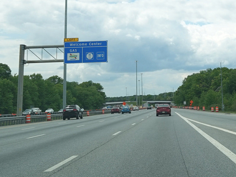 I-95 continues straight ahead into Maryland. There is some advance signage for the first Maryland exit before the state line.