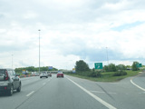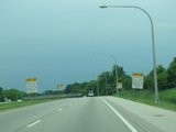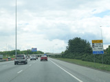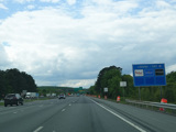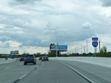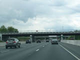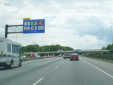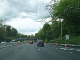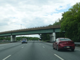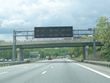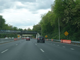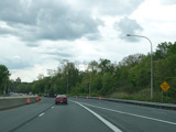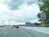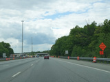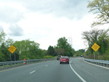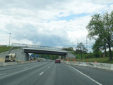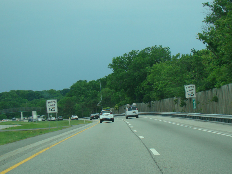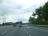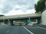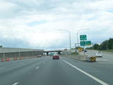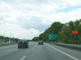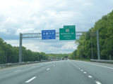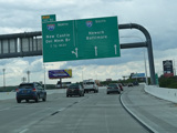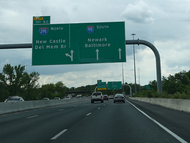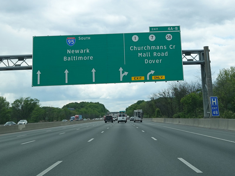 I-95 and I-295 merge to form a large highway with four lanes in each direction. From this point south, I-95 is called the Delaware Turnpike. Exits 4B-A are for Churchmans Road (DE 58), DE 1, DE 7, and Mall Road.