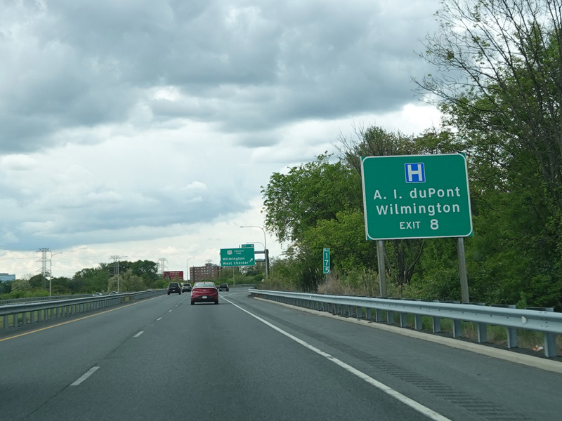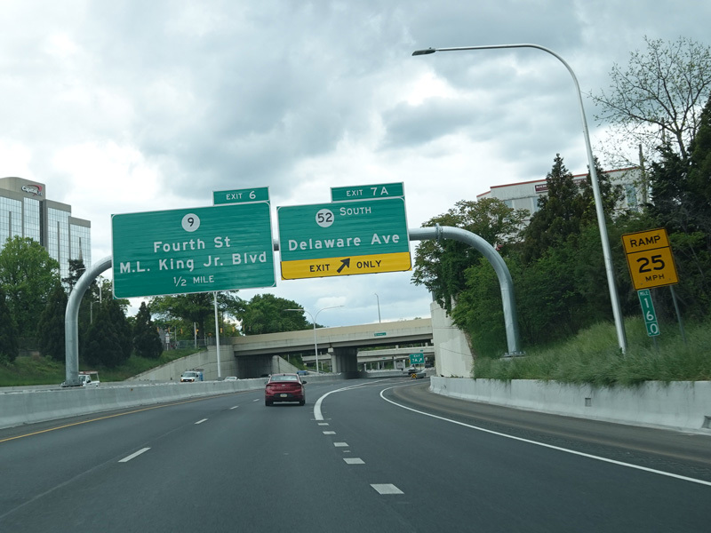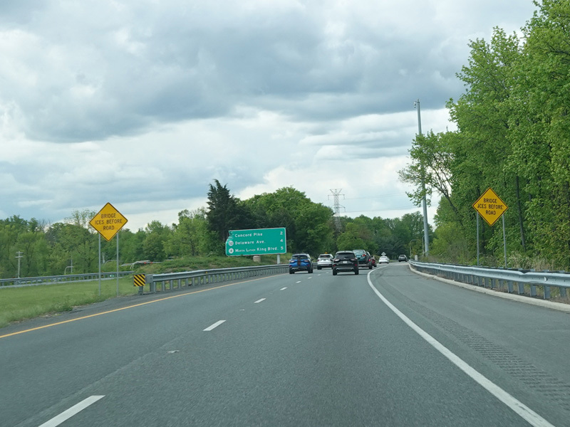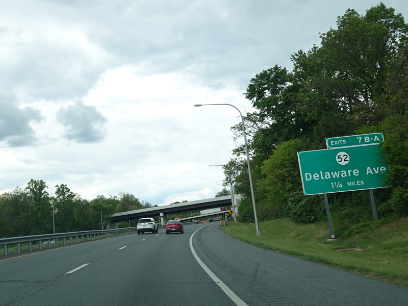 Exits 7A-B are for Delaware Avenue (DE 52).
