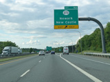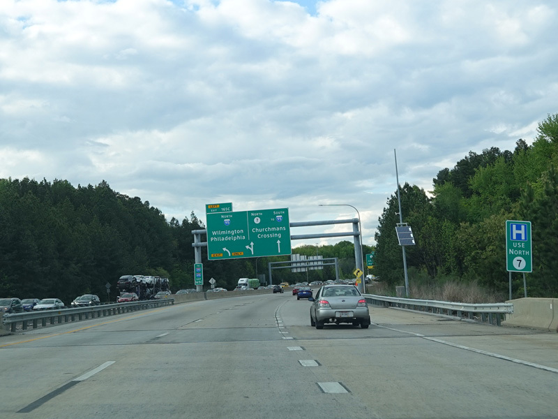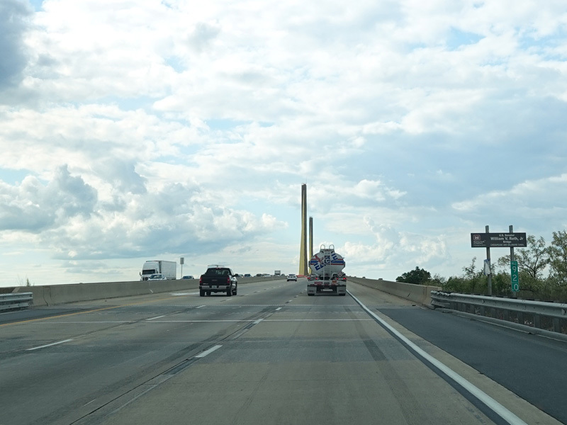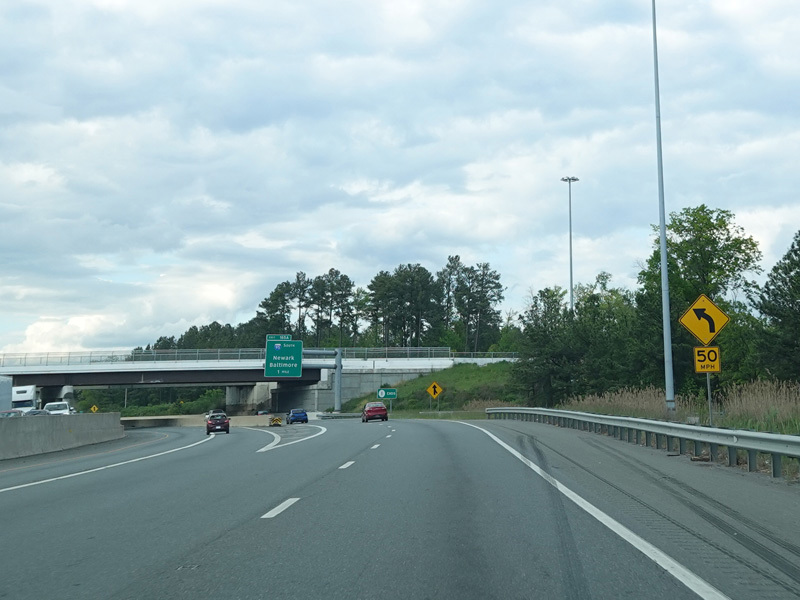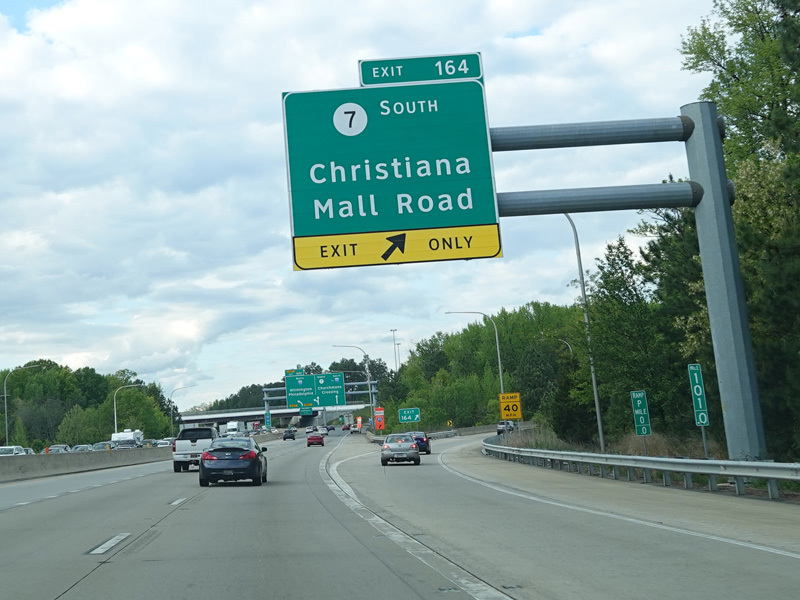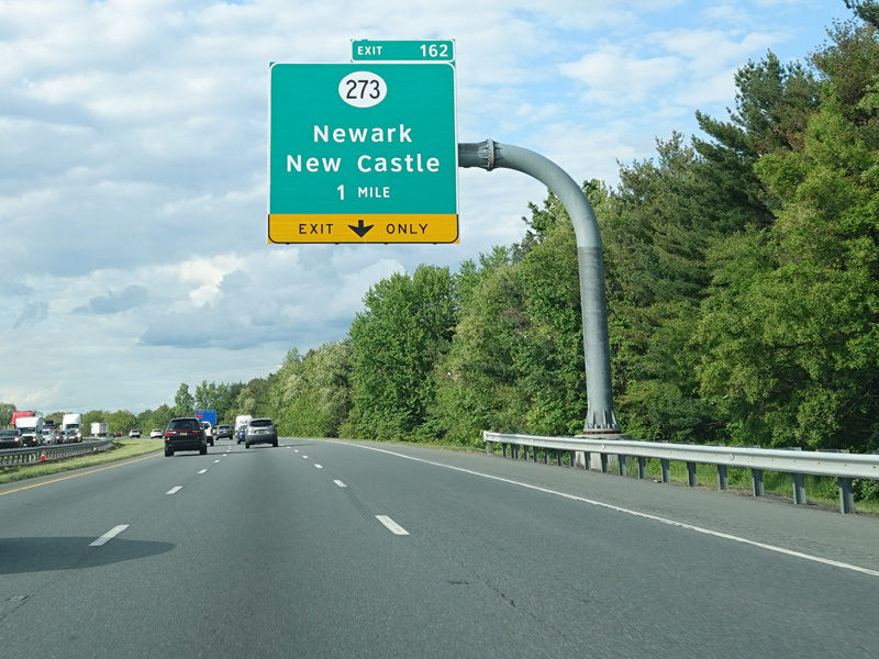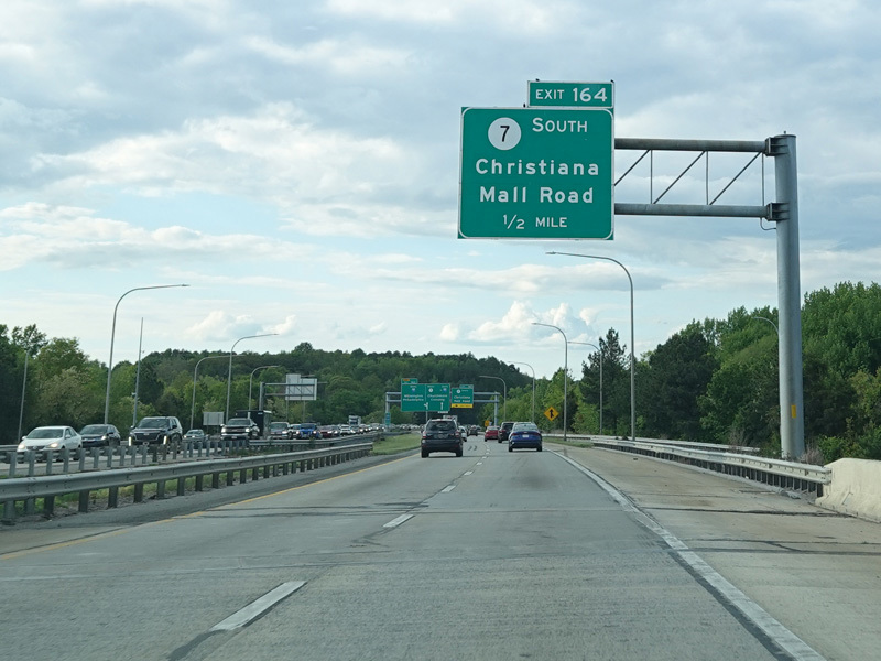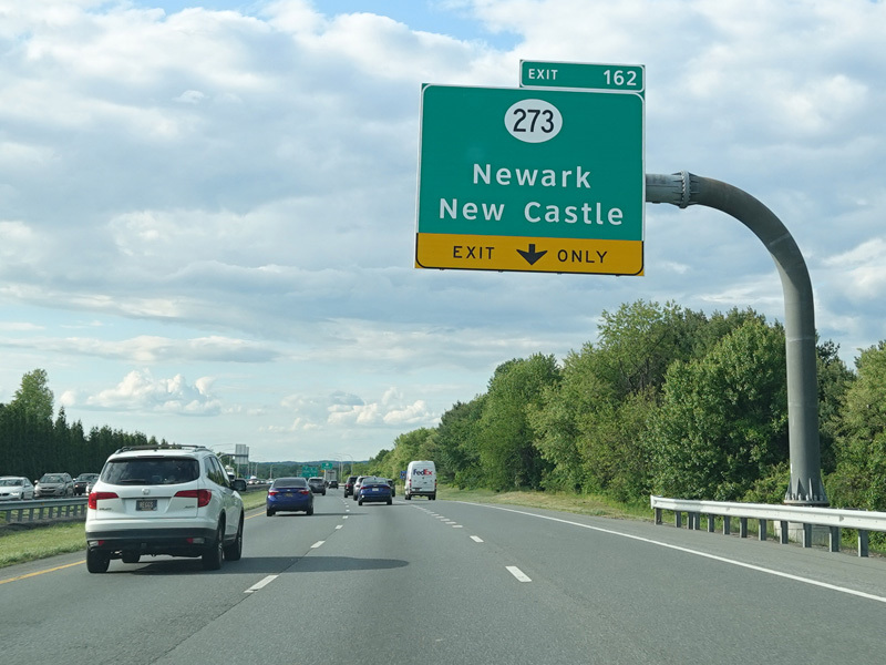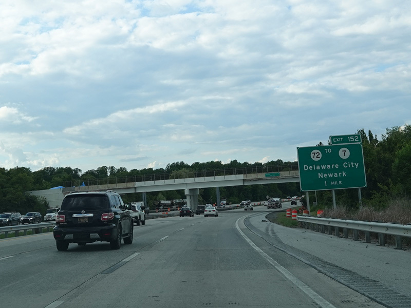 Exit 152 is for Wrangle Hill Road (DE 72) and Bear Corbitt Road (DE 7).