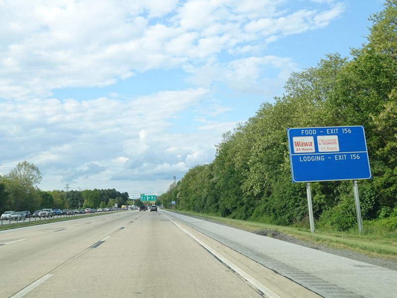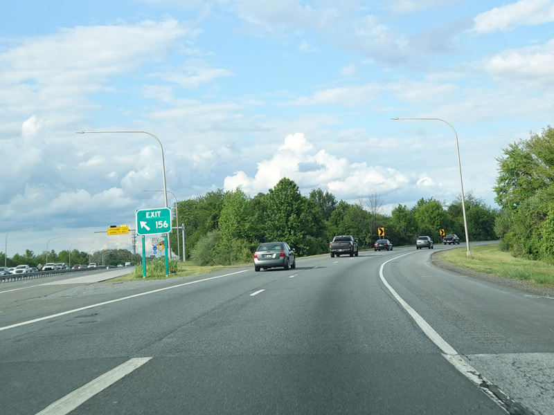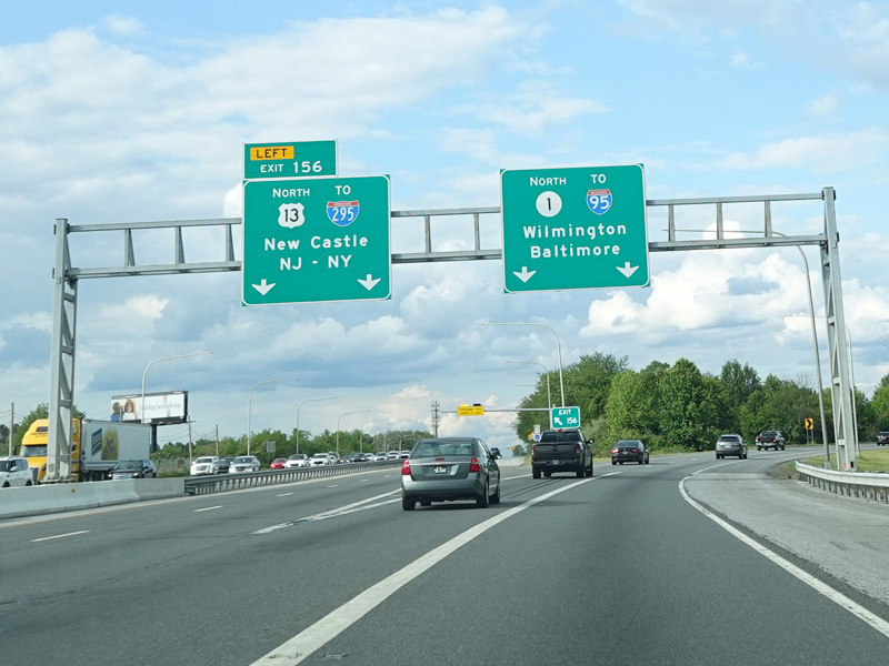 Exit 156 is for Dupont Parkway (US 13). It is a left exit.