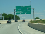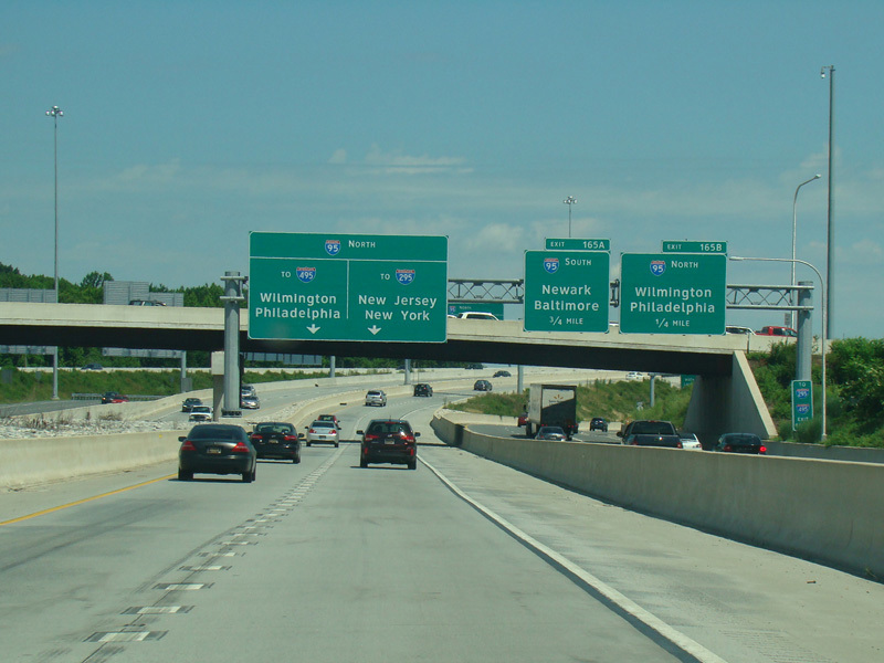 The ramp for exit 165C splits. Bear left to merge into the Delaware Turnpike (I-95) from the left for access to I-495. Bear right to merge in from the right for access to the Delaware Memorial Bridge (I-295).