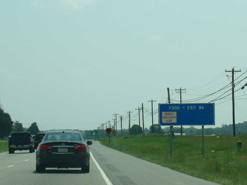 The is a grade-separated interchange with Frederica Road (DE 12), which begins here. It is marked as exit 86, as if it were an exit from the expressway.