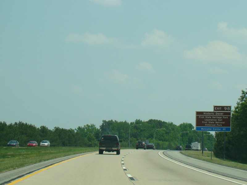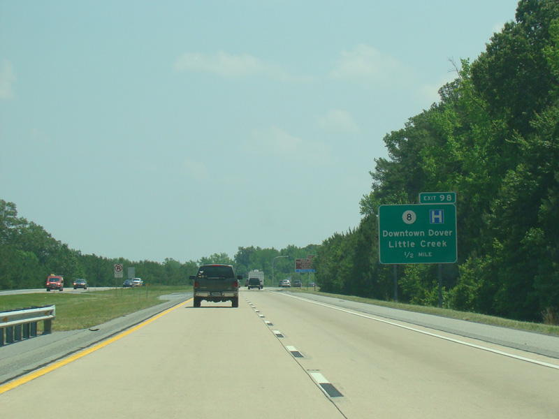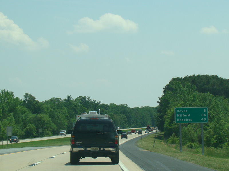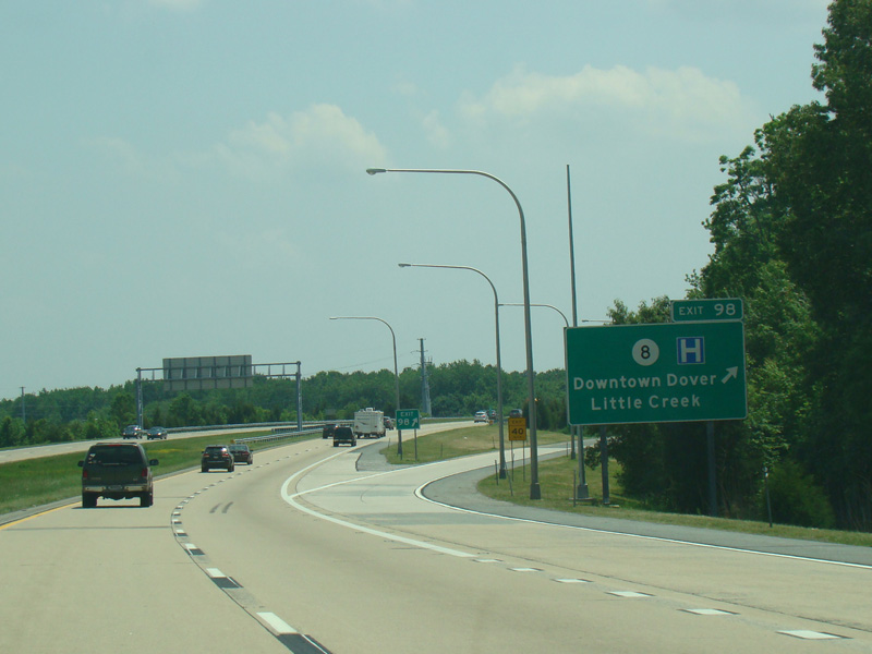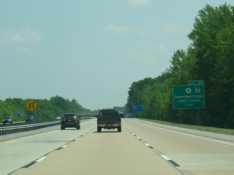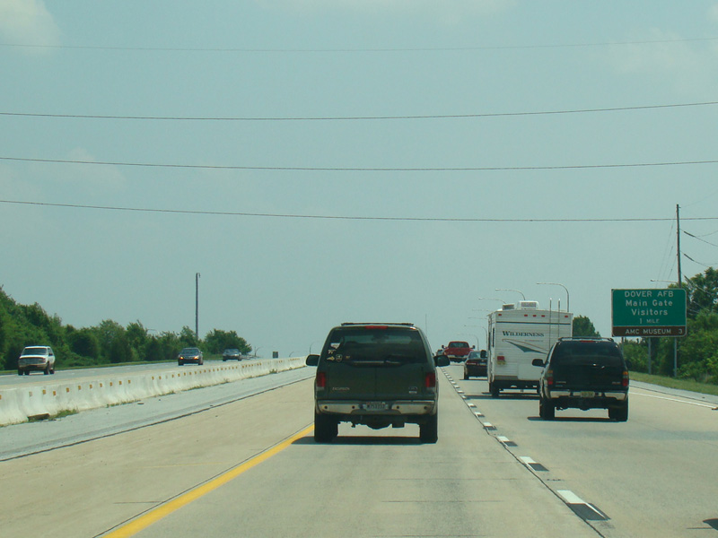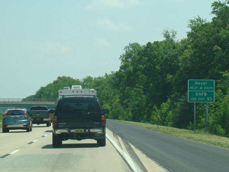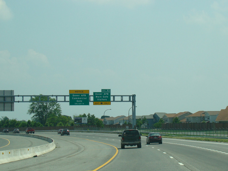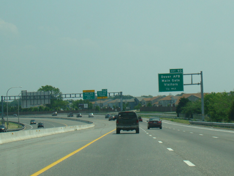 The speed limit drops to 55 MPH as the expressway is about to end. Exit 93 is for Dover Air Force Base.
