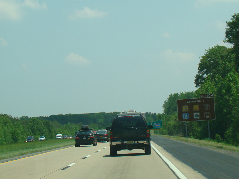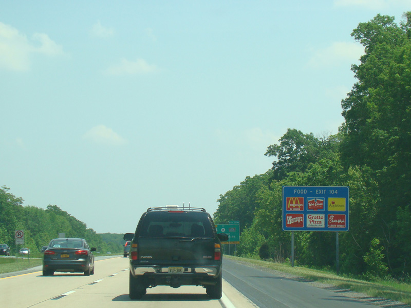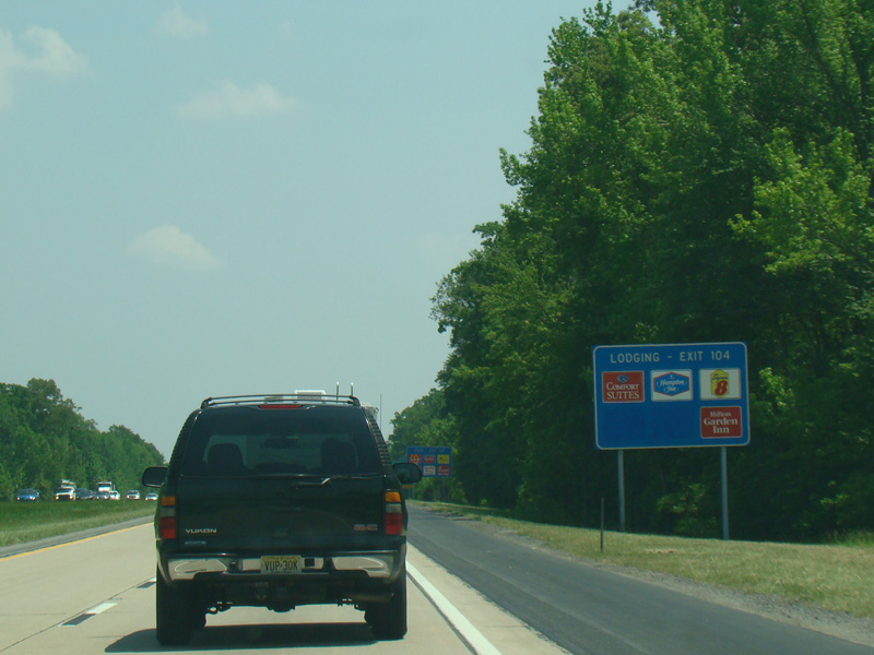 Exit 104 is for North Dupont Highway (US 13), DE 8, and Scarborough Road.