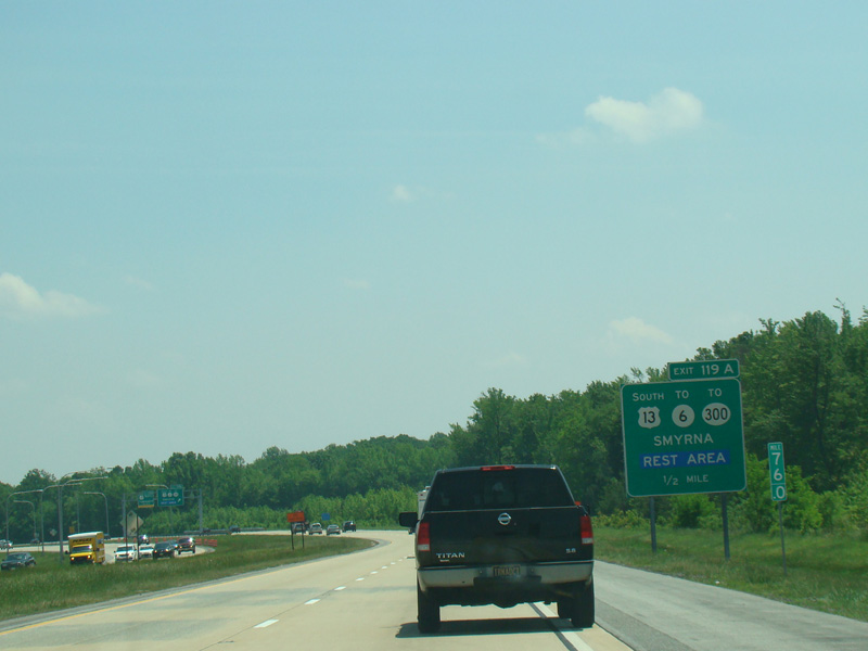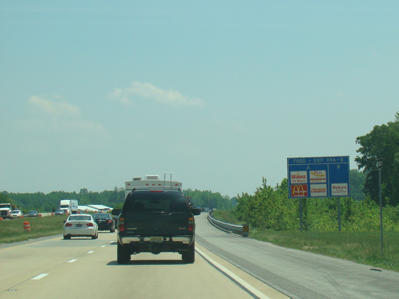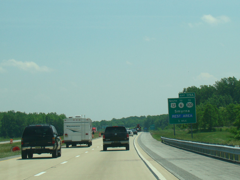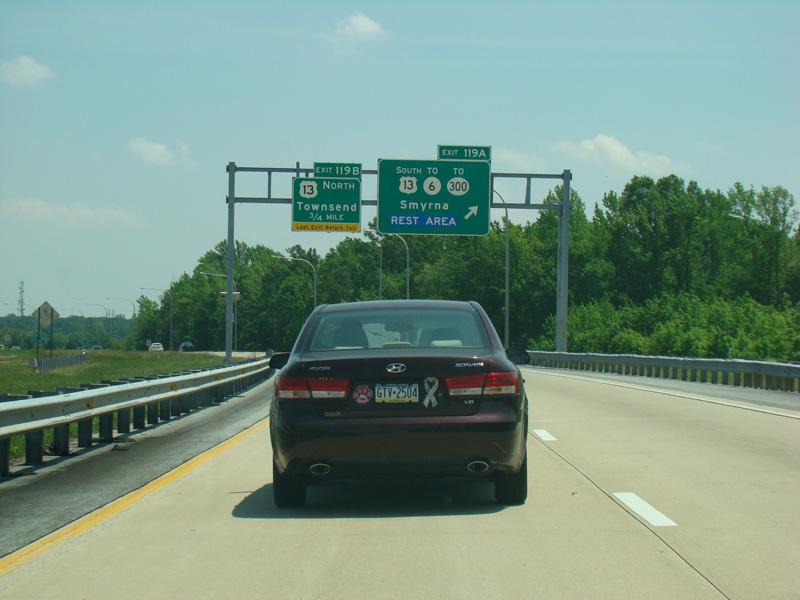 Exits 119A-B are for Dupont Parkway (US 13) and East Glenwood Avenue (DE 6/DE 300).