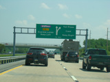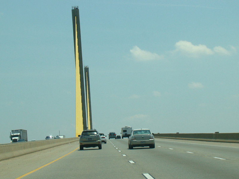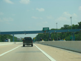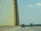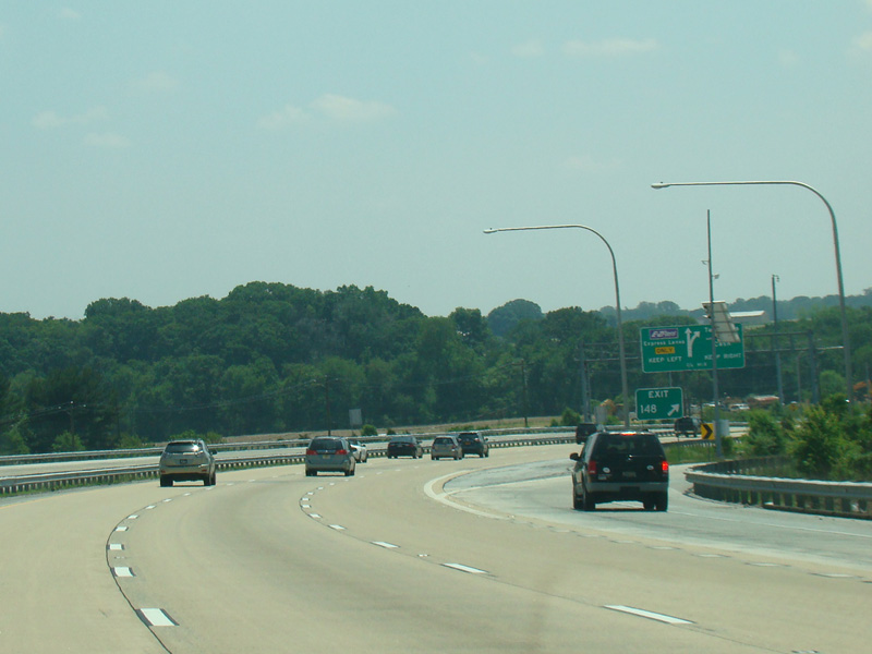 There is a cable-stayed bridge over the Chesapeake and Delaware Canal. Exit 148 is for Dupont Parkway (US 13).