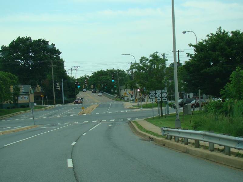 There is a traffic light at Lancaster Avenue (DE 48). Turn right to go east or left to go west and to stay on DE 100.