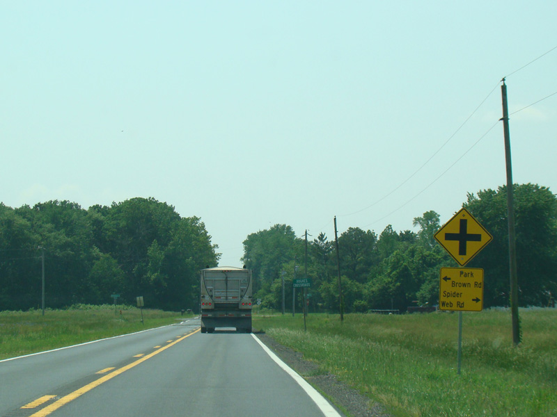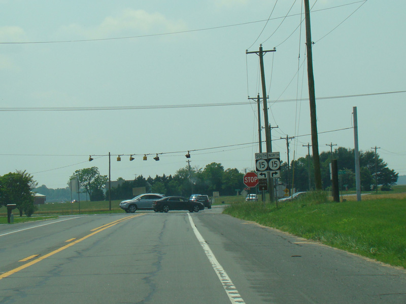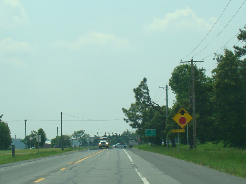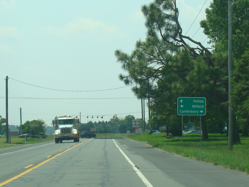 There is a flasher at Canterbury Road (DE 15). Turn right to go north or left to go south.