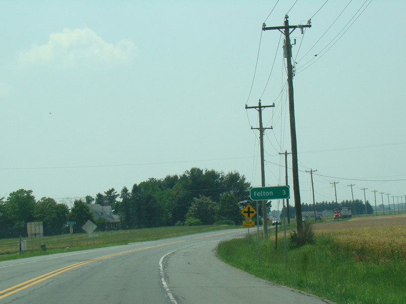 In Felton, DE 12 is known as Main Street. There is a fire signal, followed by a railroad crossing.