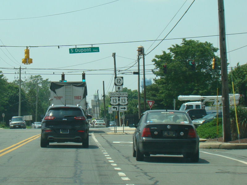 There is a traffic light at South Dupont Highway (US 13). Turn right to go north or left to go south. This is the only traffic light on DE 12.
