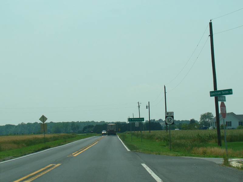 DE 12 ends at a stop sign at Whiteleysburg Road along the Maryland-Delaware state line. Turn right for MD 314, which begins here. There is no route signage.