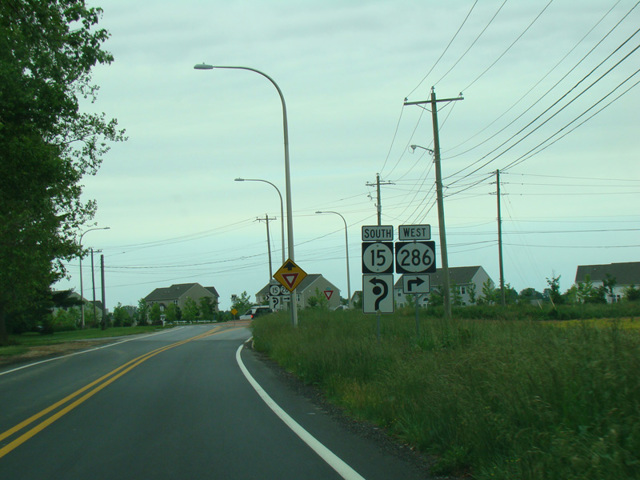 DE 15 is a north/south route through the northern half of Delaware. It begins at Milford Harrington Highway (DE 14) in Milford and runs north, zigzagging its way through the state. In most places, it is a two-lane undivided road, and it has a number of multiplexes along the way. It eventually ends at Summit Bridge Road (DE 896/DE 71) just south of the Summit Bridge.