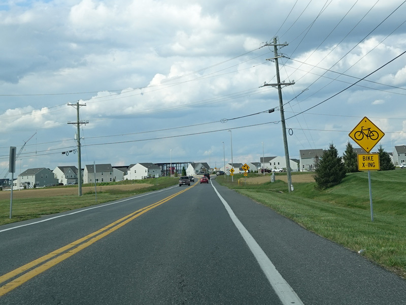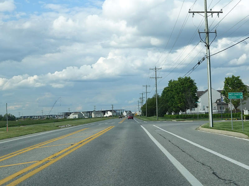 Skipping a few miles, Bethel Church Road runs north as a two-lane undivided road.