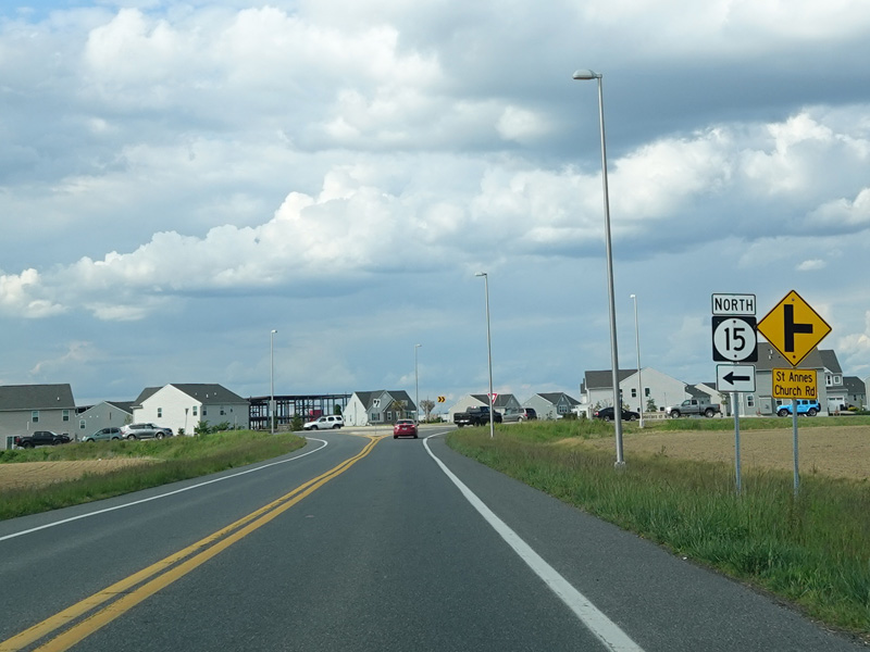 DE 15 ends at a traffic light at Summit Bridge Road (US 301/DE 896/DE 71). Turn left to go north or right to go south. Bethel Church Road continues straight ahead as a local street.