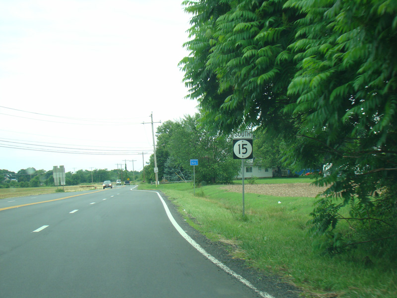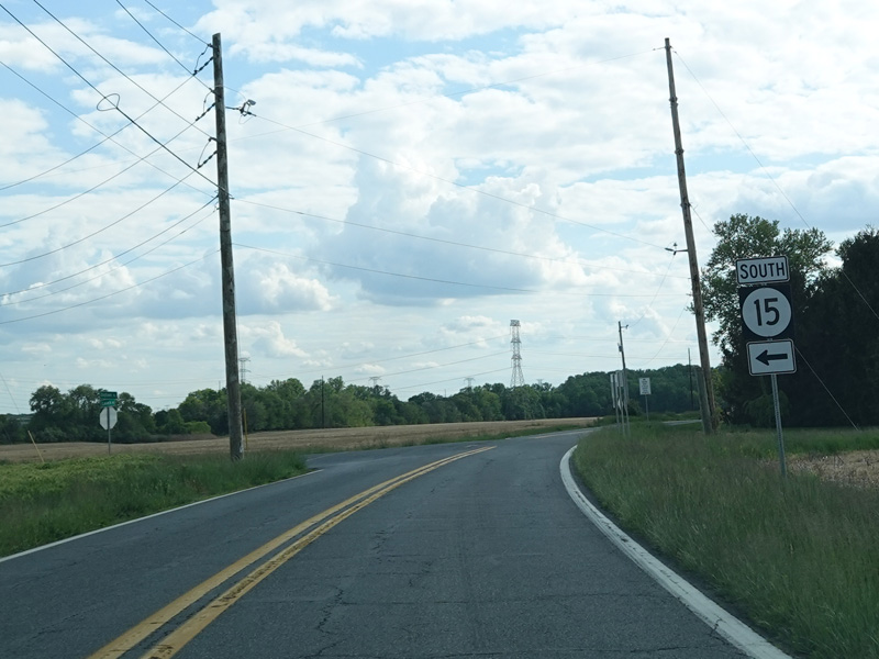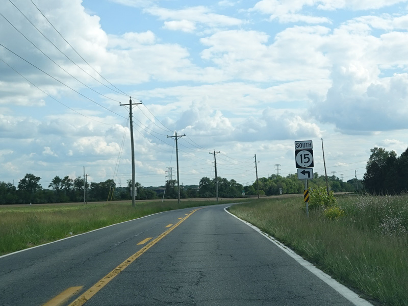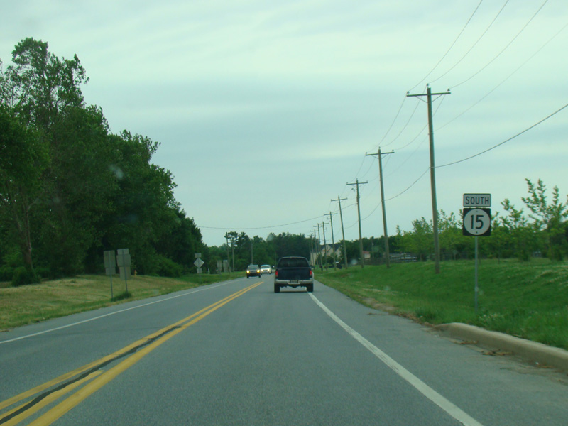 Bethel Church Road takes on the DE 15 designation at Summit Bridge Road (US 301/DE 896/DE 71). It runs southwest as a two-lane undivided road.
