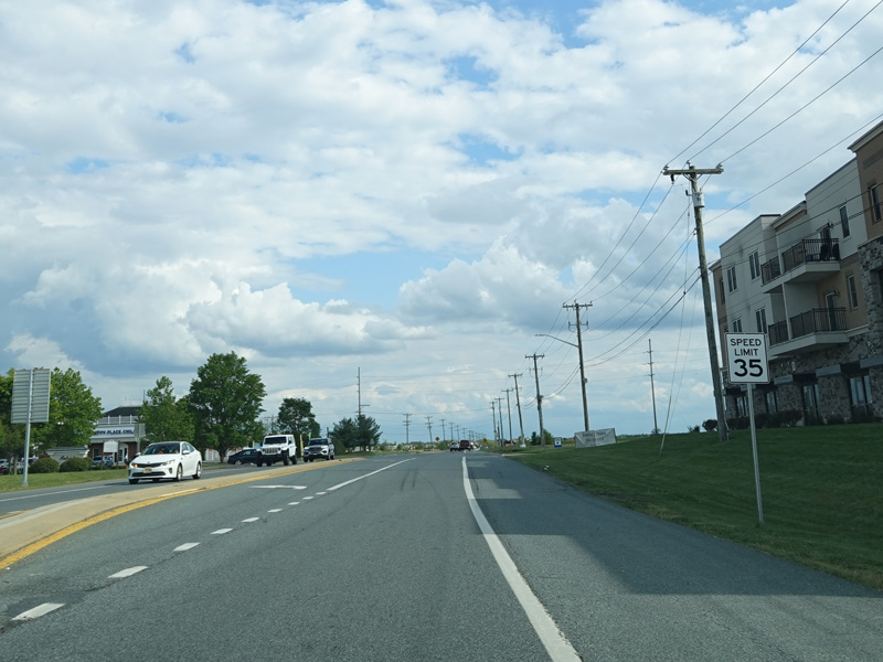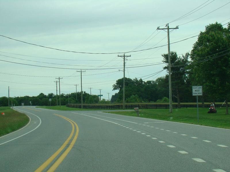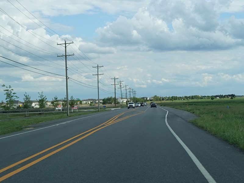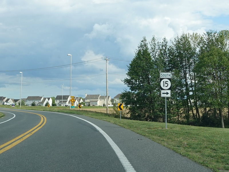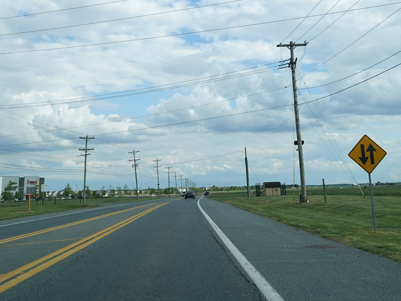 After a little over a mile, DE 15 splits off onto Levels Road, runs south as a two-lane undivided road.