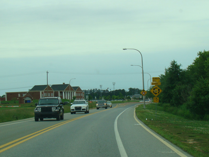 Choptank Road ends at a traffic circle at Bunker Hill Road and School Road. DE 15 continues to the left on Bunker Hill Road.