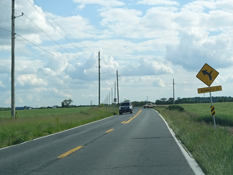 Levels Road continues south as a two-lane undivided road. There are uncontrolled intersections at Strawberry Lane and Grears Corner Road.