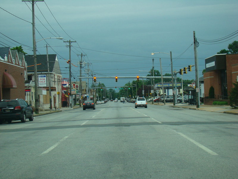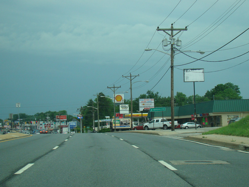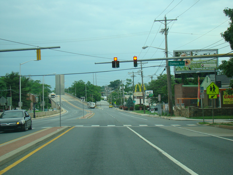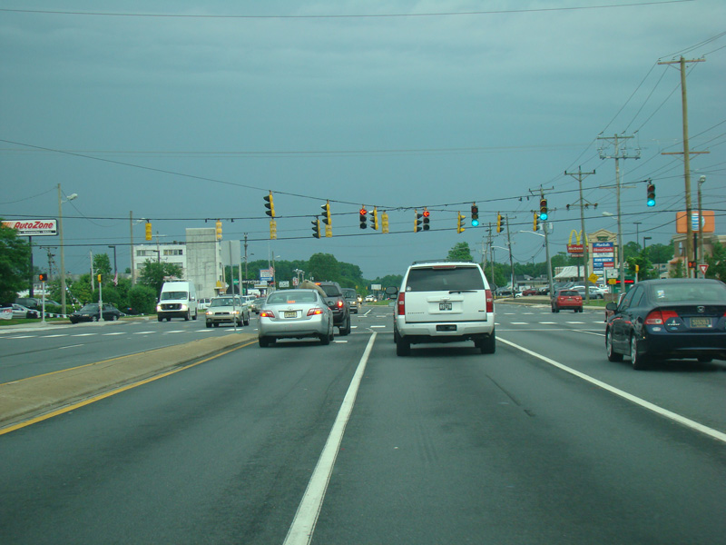 Skipping a few miles, Kirkwood Highway runs west as a six-lane divided highway.