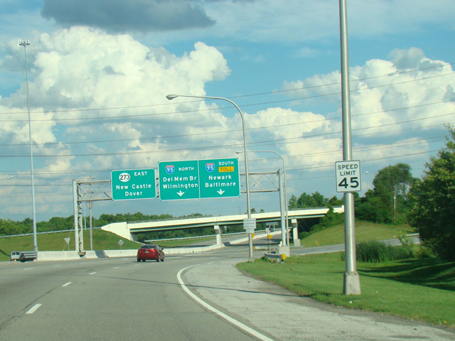 DE 273 is an extension of MD 273 into Delaware. It changes names from Telegraph Road to Nottingham Road at the state line and runs east to Newark, where it is known as West Main Street and East Main Street. Heading out of town, it widens to become a four-lane divided highway called Ogletown Road. It curves to the southeast, crossing the Delaware Turnpike (I-95) in Christiana. It then curves back to the east and crosses the DE 1 toll highway. It continues east to New Castle, where it narrows down to two lanes and ends at Washington Street (DE 9) and Basin Road (DE 141).