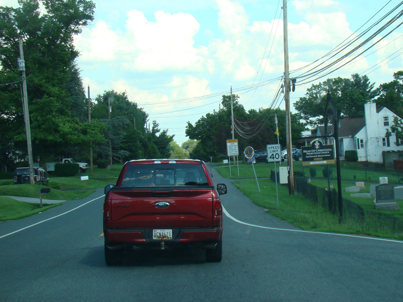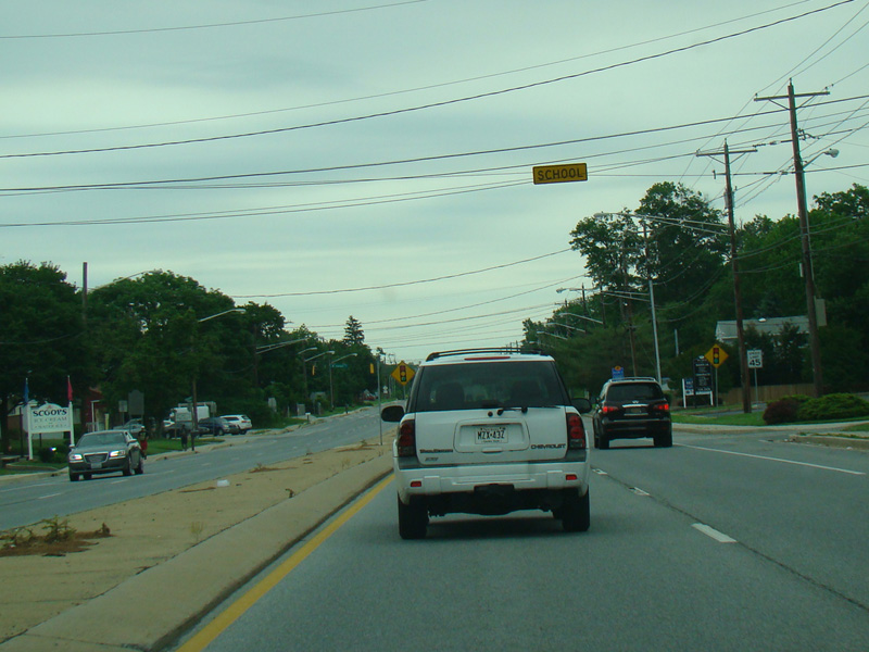 Welcome to Delaware! Telegraph Road (MD 273) turns into Nottingham Road at the state line. It runs east as a two-lane undivided road, eventually changing names to become West Main Street.