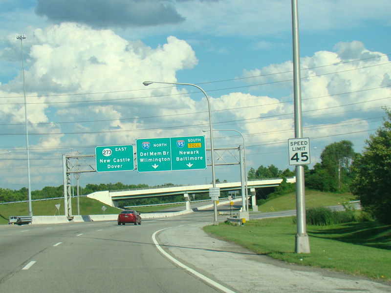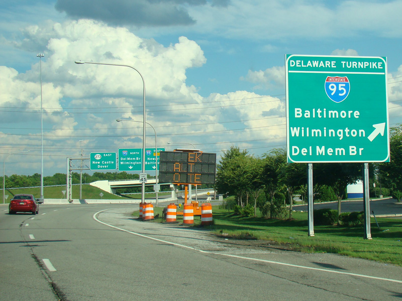 There is signage for the interchange with the DE 1 toll highway ahead.