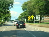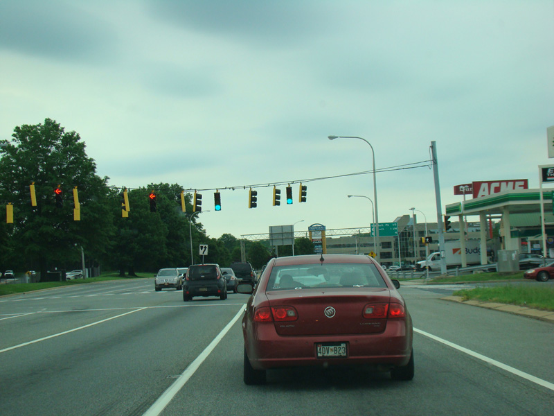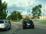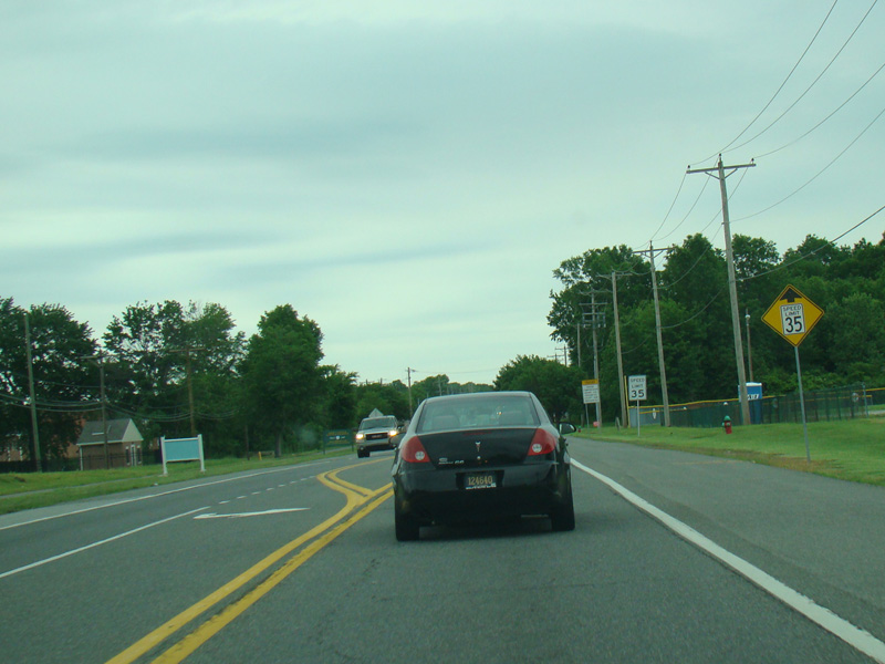 There is a traffic light at DE 7. Turn left to go north or right to go south.