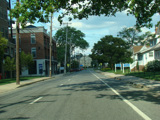 West Delaware Avenue becomes East Delaware Avenue. There are traffic lights at Academy Street and South Chapel Street.