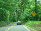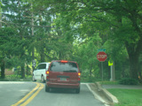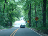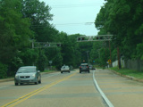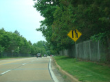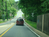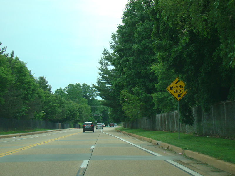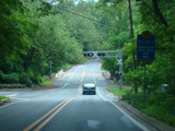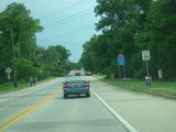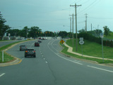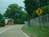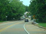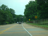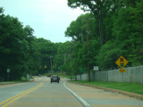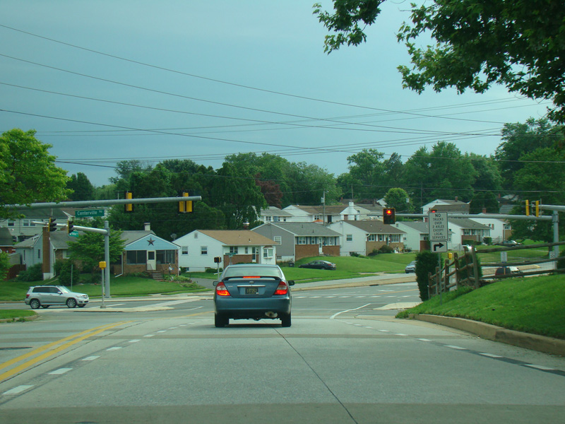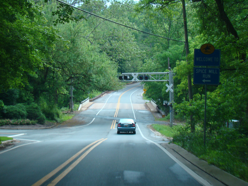 Faulkland Road narrows down to two lanes again, and the median ends. There is a traffic light at Centreville Road, followed by another railroad crossing.