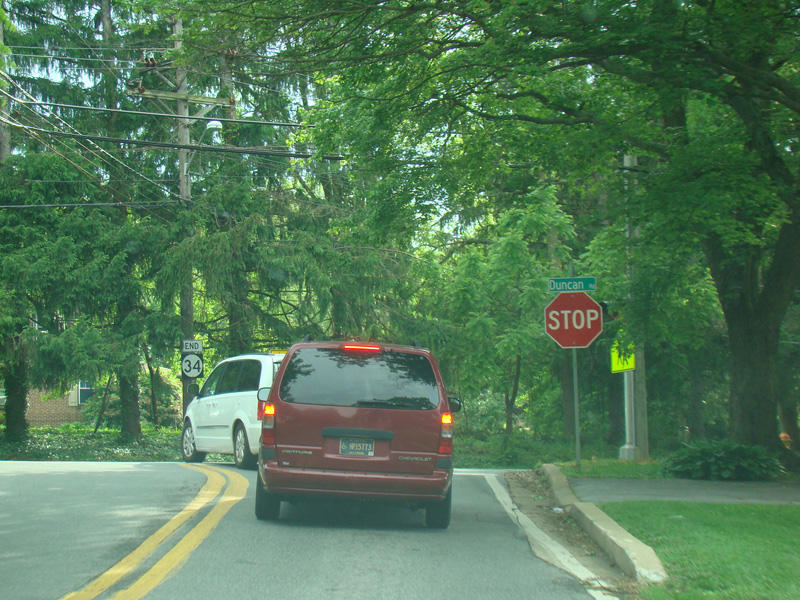 Faulkland Road continues west for a short distance and then ends at a stop sign at Duncan Road.