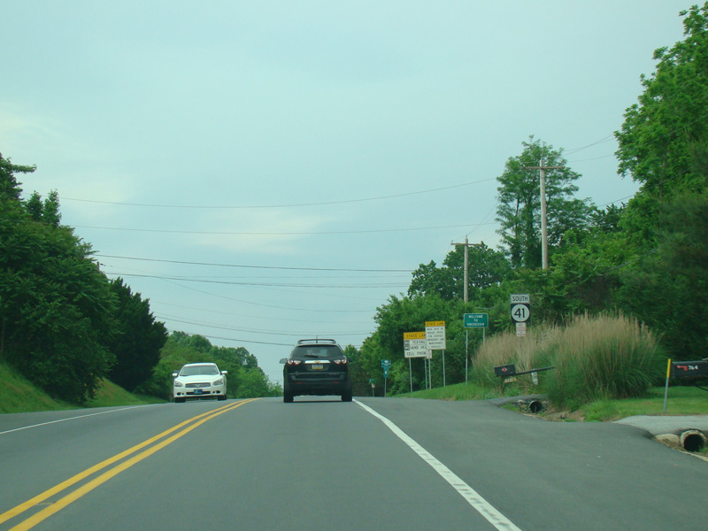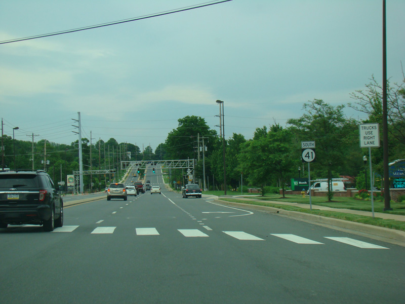 There is a traffic light at Kirkwood Highway (DE 2). Turn left to go east or right to go west. DE 41 ends here. Newport Gap Pike continues straight ahead as DE 62.