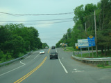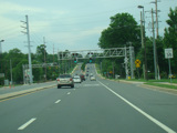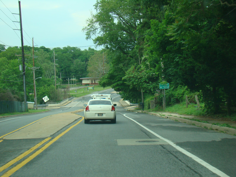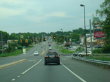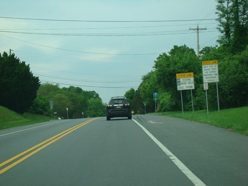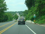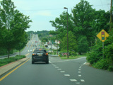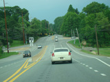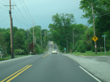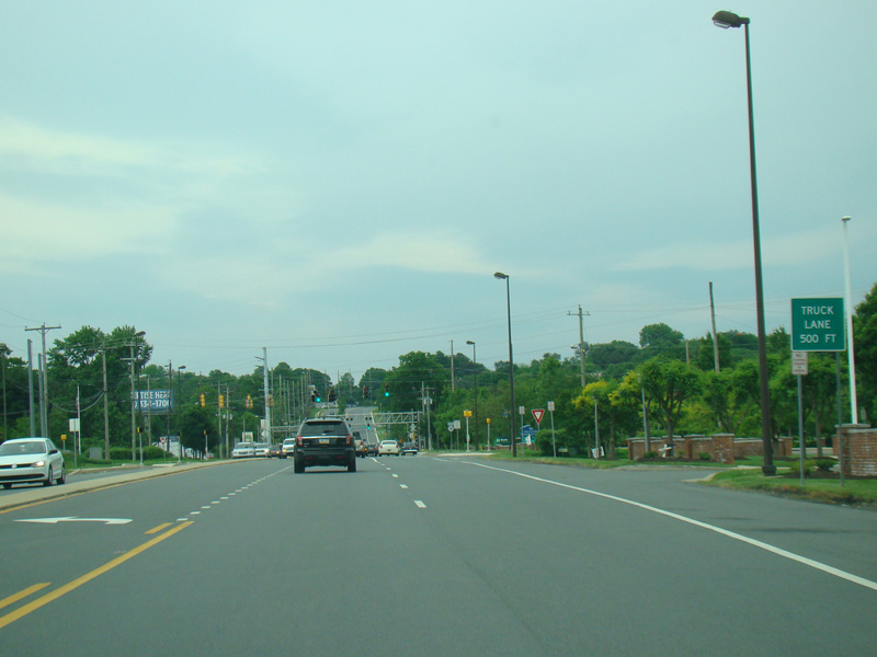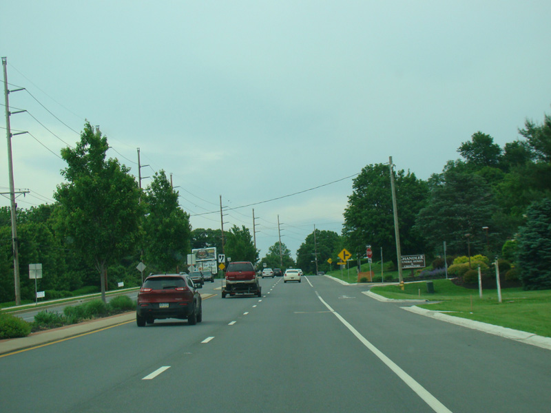 Newport Gap Pike runs south as a two-lane road. It has a median in some places, but in most it is undivided.