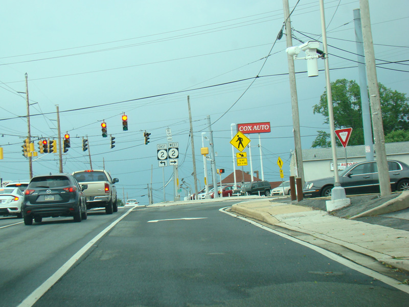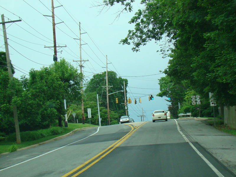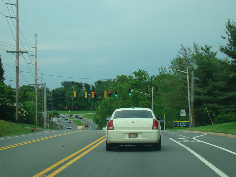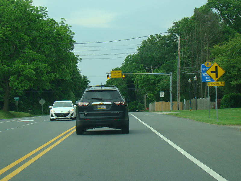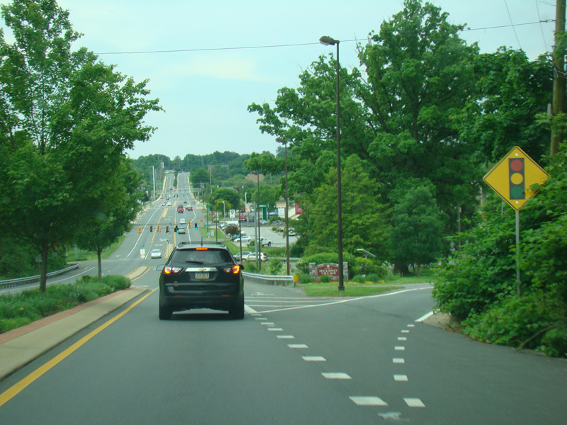 There is a traffic light at Faulkland Road (DE 34). Turn left to go east or right to go west.